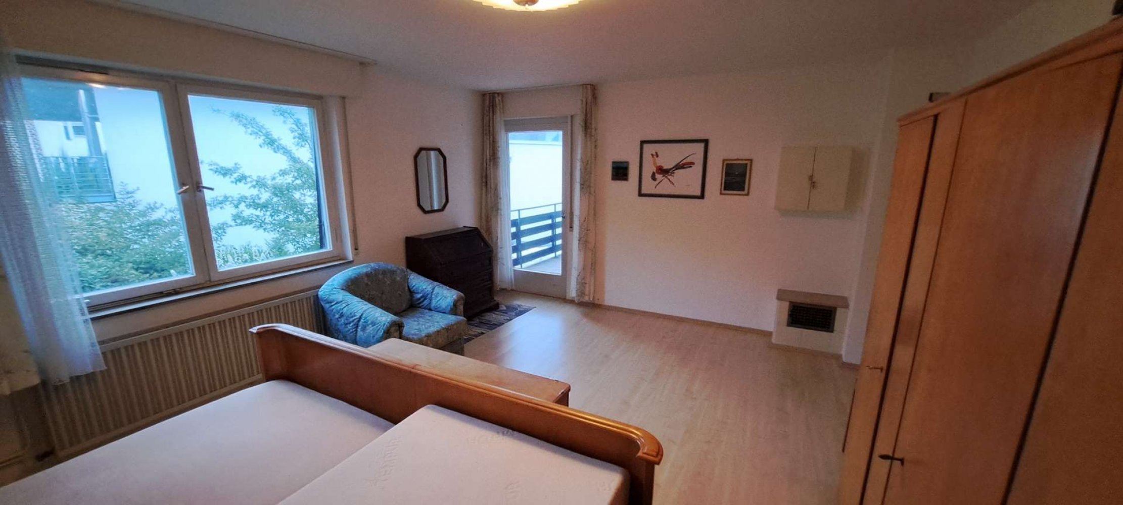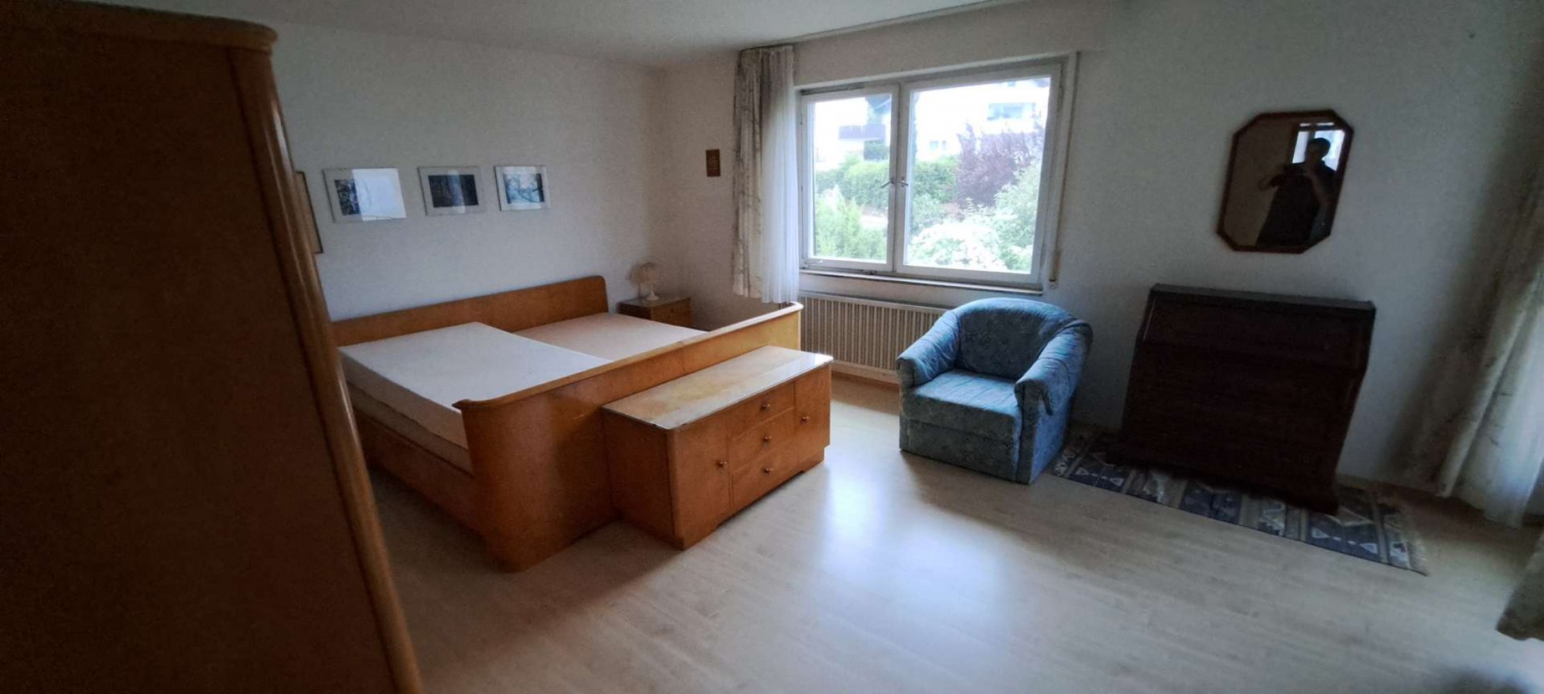 Obergeschoss: Drei Schlafzimmer. Davon zwei Schlafzimmer ( ca. 23 m² und 12 m²) mit Blick nach Süden und Zugang zum Südbalkon sowie ein Schlafzimmer mit Blick nach Westen (8m²). Gepflegte und neuwertige Bodenbeläge. Tageslichtbad mit Badewanne und einem separaten WC (ebenfalls mit Fenster). Dachboden mit zusätzlichem Stauraum.