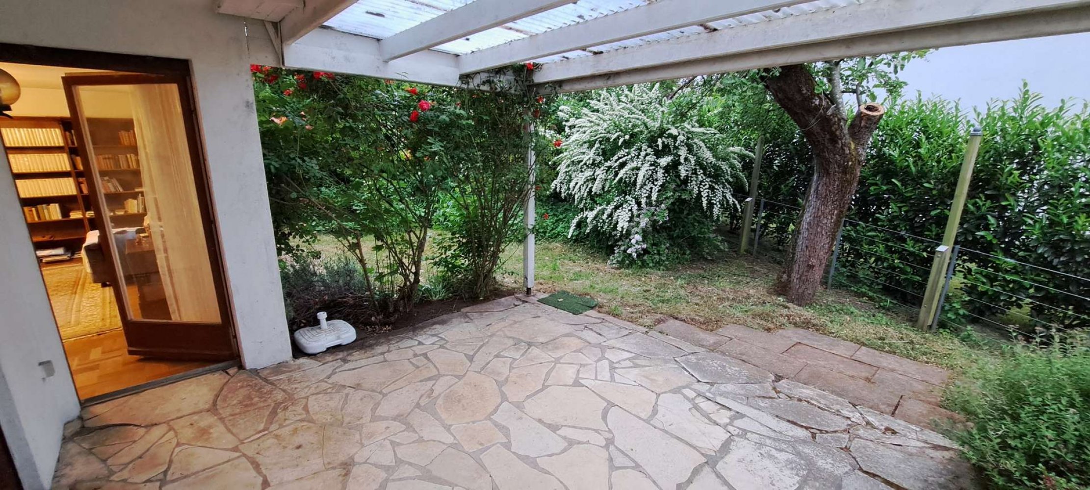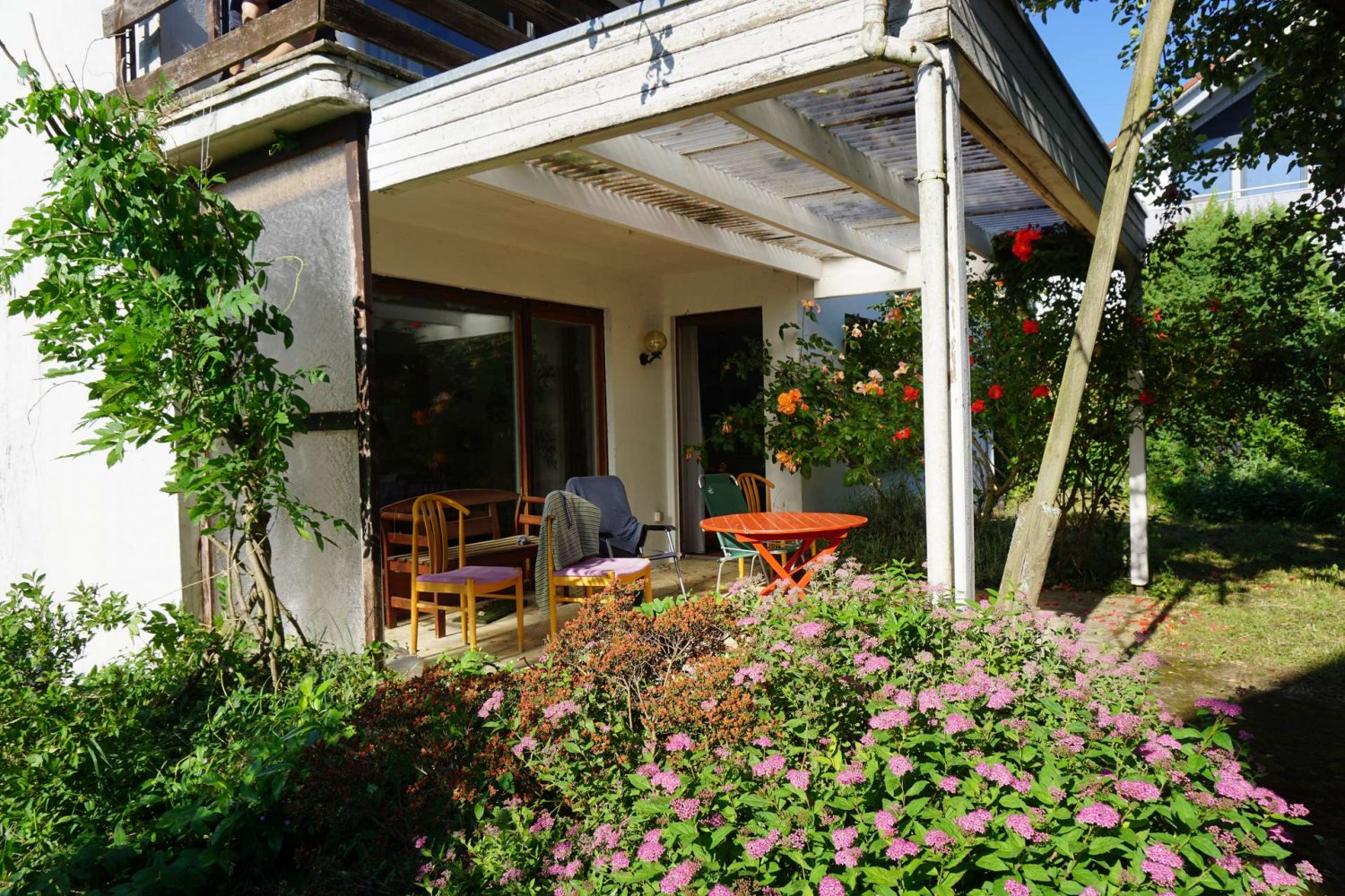 Überdachte Süd- Terrasse und Südbalkon mit Gartenblick