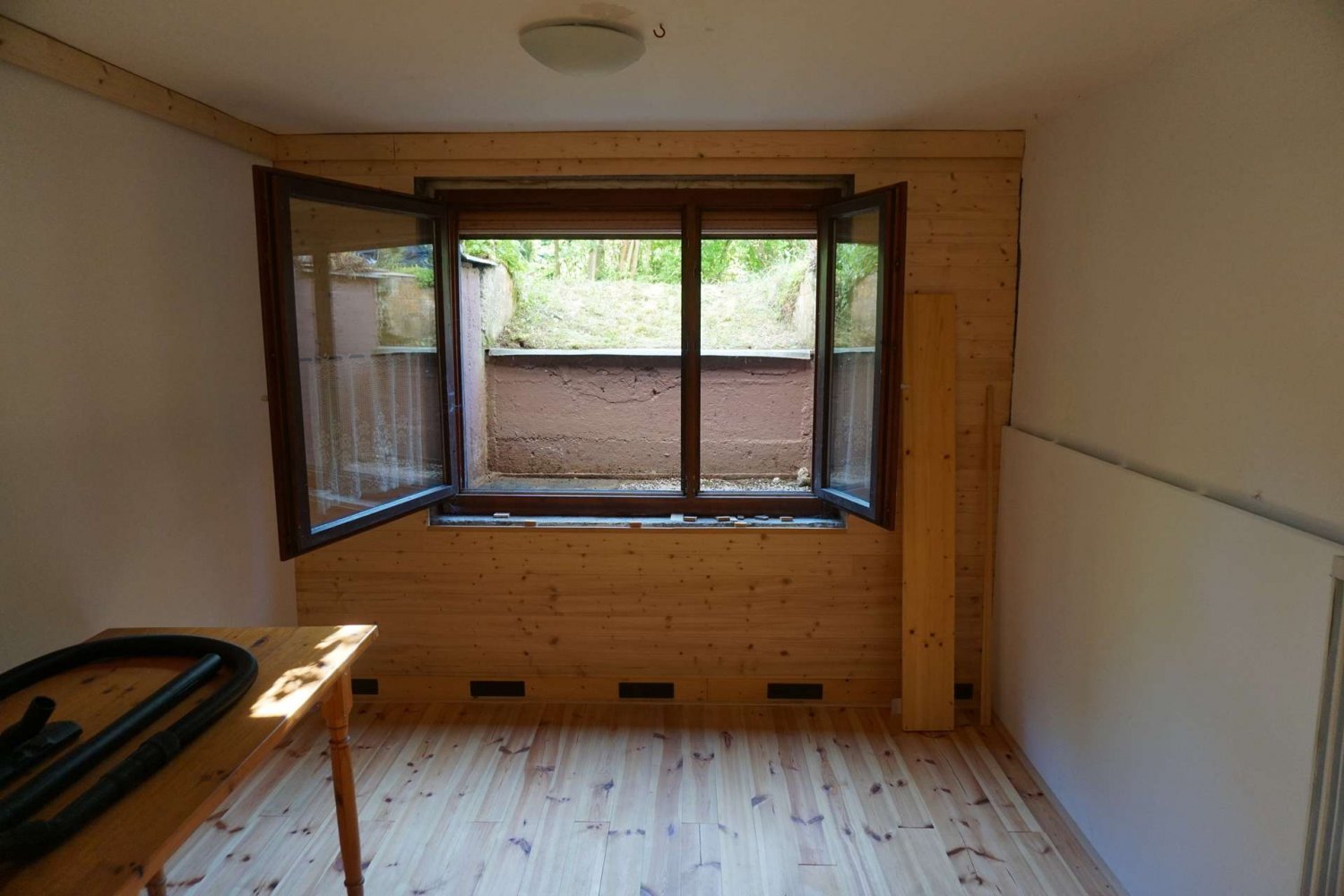 * Fenster: Holzfenster, Waschküche und Kellerraum mit Kunstoffenster