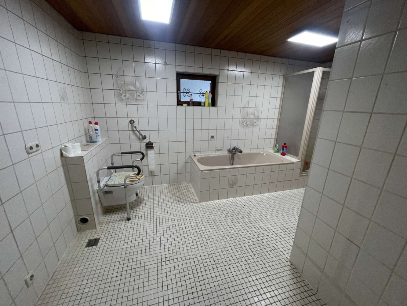 - Großes, weiß gefliestes Badezimmer im Erdgeschoss:
