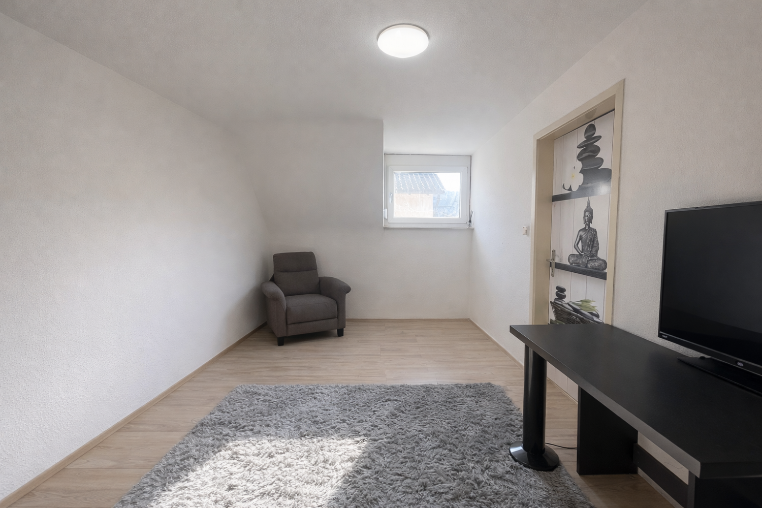 Das Haus verfügt über insgesamt vier Zimmer. Im Erdgeschoss befinden sich das Wohnzimmer, eine große Einbauküche sowie ein Tageslichtbad mit ebenerdiger Dusche. Der praktische Grundriss sorgt für kurze Wege und eine angenehme Wohnatmosphäre. Im Obergeschoss stehen drei Schlafzimmer zur Verfügung, wodurch sich die Immobilie ideal für Paare oder kleine Familien eignet. Zusätzlich befindet sich im Obergeschoss ein weiteres WC.