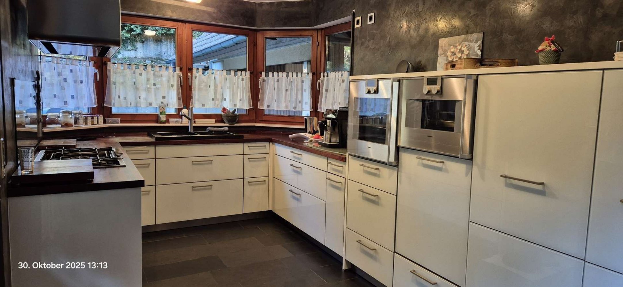 • Hochwertige Einbauküche mit weißen Glasfronten und Gaggenau-Geräten (im Kaufpreis enthalten)