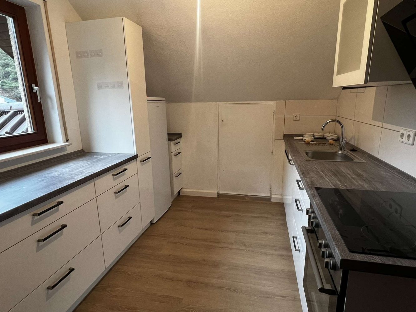 Die Hauptwohnung im Erdgeschoss (ca. 100 m²) überzeugt durch eine durchdachte Aufteilung mit offener Wohnküche (im Preis enthalten), großzügigem Wohn- und Essbereich mit Kaminofen sowie Zugang zur Terrasse.