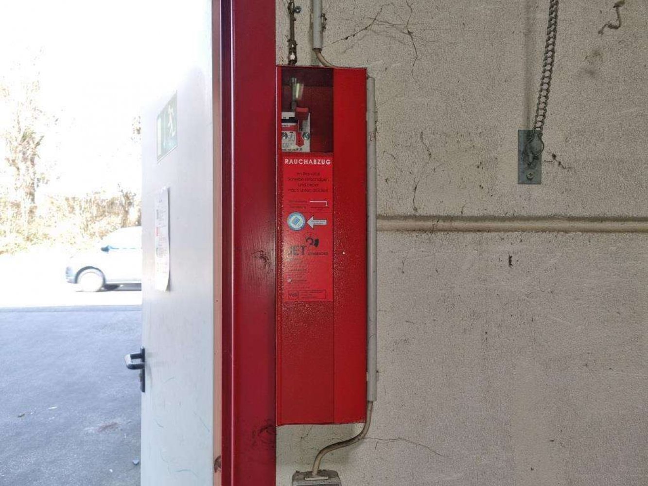 Direkt von der Straße erreicht man die Halle am besten über das vorhandene Rolltor. Mit einer Breite und Höhe von 4m x 4m, können Sie direkt mit dem Transporter in die Halle einfahren. Durch die nutzbare Raumhöhe von ca. 5 m wäre hier das Aufstellen von Hochregalen durchaus denkbar. Da die gesamte Höhe der Halle bei ca. 7,10 m liegt, ist die Beleuchtung sowie die Gebläse der Heizung , durch die Stahlträger getrennt und geschützt. Hier sprechen wir von 4 Gebläsen der vorhandenen Öl-Heizung, sowie den 32 Neonröhren die für ausreichende Beleuchtung sorgen zusammen mit den Oberlichtern. Diese bringen nicht nur Tageslicht in die Halle, sondern sind auch für den Rauchabzug zuständig.
