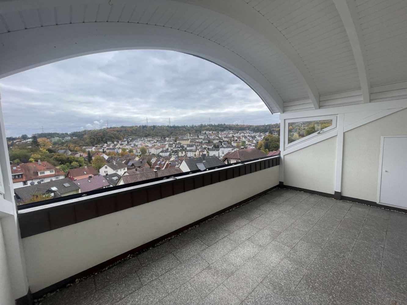 Besonders hervorzuheben ist die große, überdachte Loggia mit etwa 18 m², die stabilen Wetterschutz bietet und mit ihrer großzügigen Fläche viel Platz für Erholung, gemütliche Abende mit Freunden, Grillfeste und einen atemberaubenden Ausblick schafft.