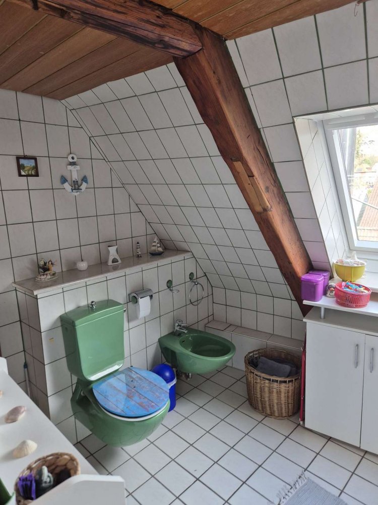 Die 4,5 Zimmer-Maisonette-Wohnung befindet sich in einer denkmalgeschützten Immobilie aus dem Jahr 1900. Die Wohnung ist mitten in Neuenbürg, unterhalb vom Schloss! Über das Treppenhaus gelangen Sie in die 4. Etage des Mehrfamilienhauses, ein Aufzug ist nicht vorhanden. Oben angekommen betreten Sie die Wohnung über einen Flur. Auf dieser Etage erreichen Sie folgende Zimmer:
