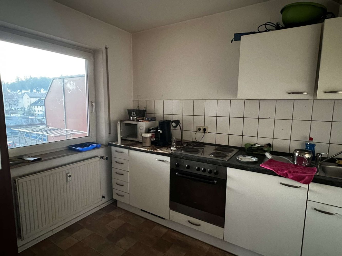 Ein Balkon bietet zusätzlichen Außenbereich. Ein Kellerabteil im Speicher sowie ein Tiefgaragenstellplatz gehören zur Wohnung. Ein Hausmeisterservice sorgt für ein gepflegtes Wohnumfeld. Beheizt wird das Haus über eine Öl-Zentralheizung aus 1991.