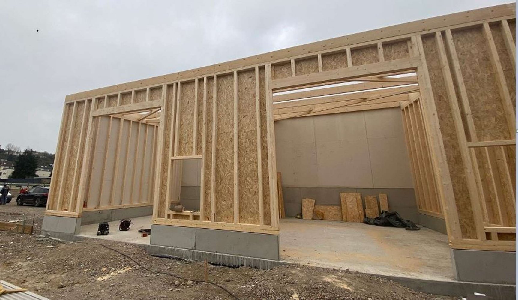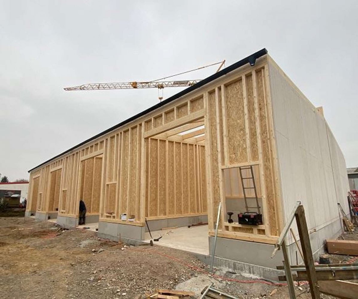 - Sandwichbauweise mit OSB- und Fermacellplatten und Dämmwolle