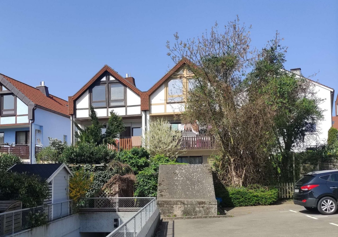 Der Tiefgaragen-Ausgang und auch der Außen-Stellplatz grenzen direkt ans Grundstück des Hauses.