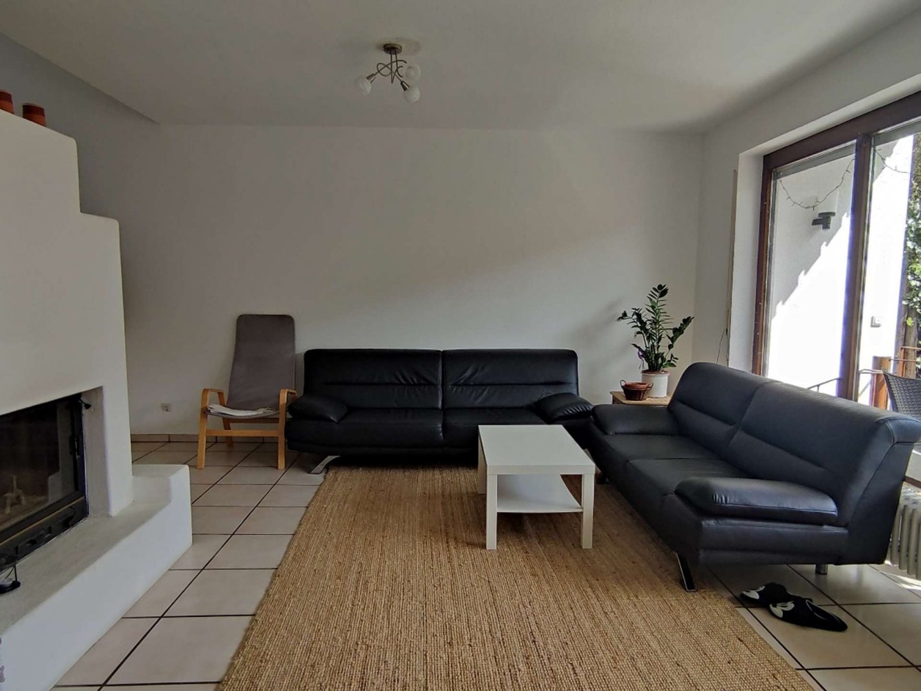Im Wohnbereich befindet sich ein toller Kamin und der Zugang zur Terrasse.