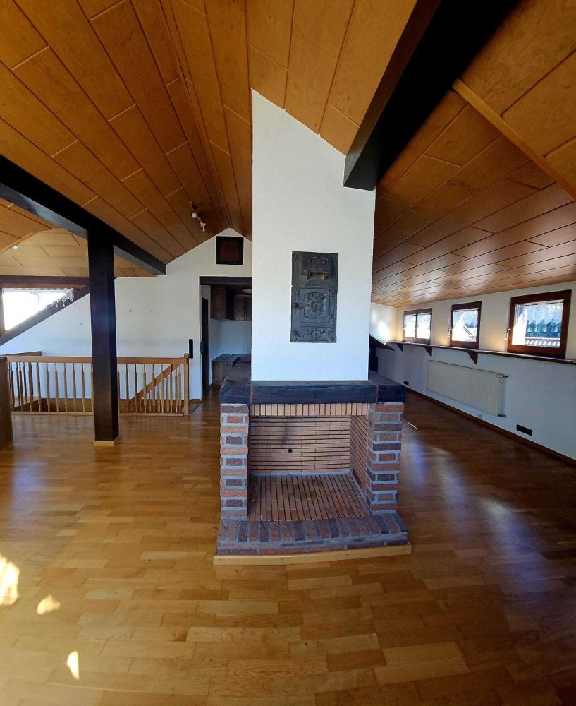 Das Haus verfügt über 5 Zimmer, 1 Badezimmer, ein Gäste-WC und eine voll ausgestattete Einbauküche. Die Haupträume befinden sich im Erdgeschoss, im Dachgeschoss befindet sich ein weiteres kleines Zimmer und das Wohnzimmer mit einem Kamin der als Dekorationszweck dient.