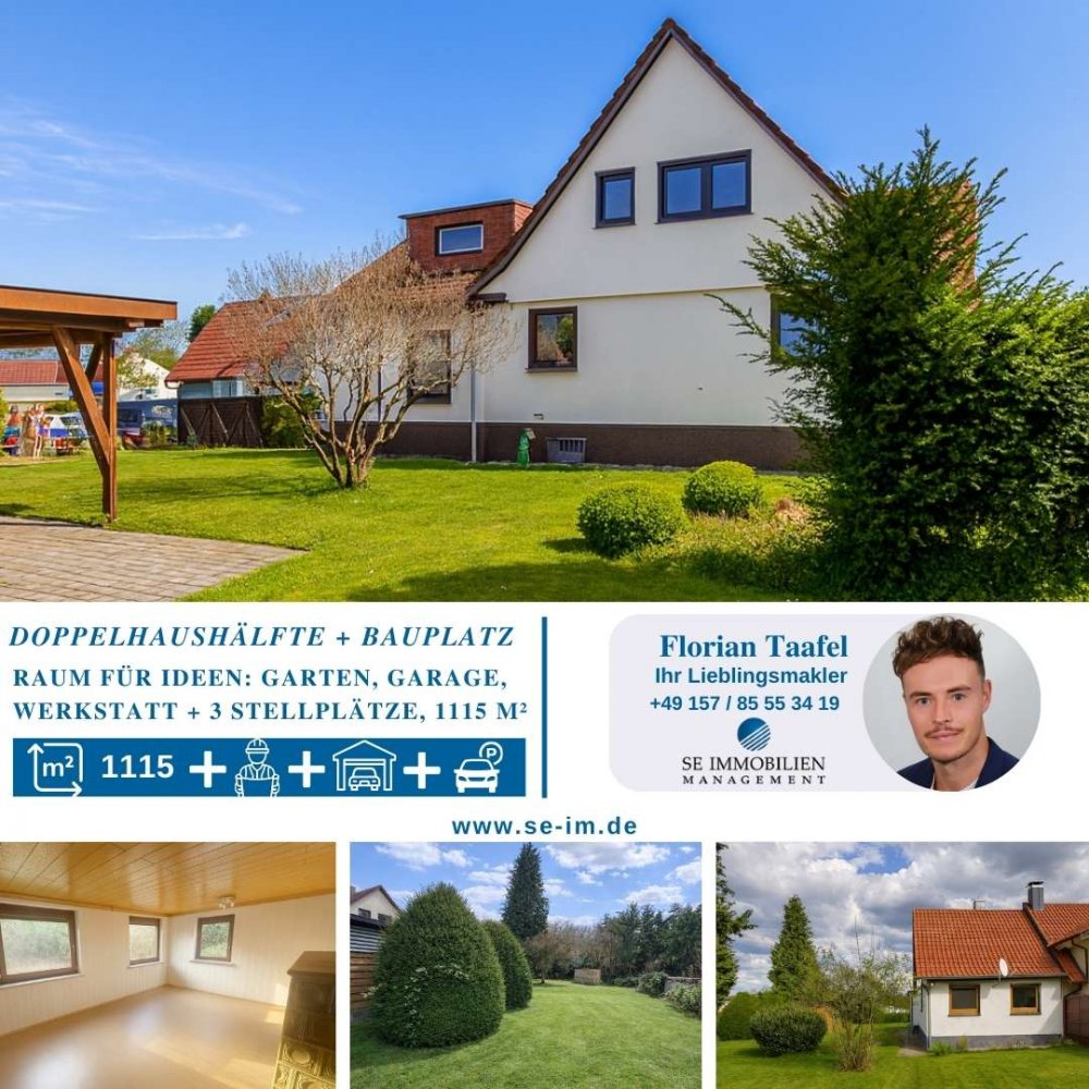 Raum für Ideen: Doppelhaushälfte mit Bauplatz, großem Garten und Garage