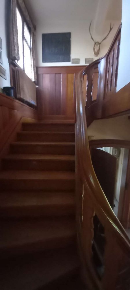 Ebenso befindet sich im EG eine geschwungene, massive Holztreppe die Sie ins Obgeschoss führt. Dort erwarten Sie weitere Highligths wie 2 große Schlafzimmer mit Aussichtsbalkon, dem historisch belassenen Tageslicht-Badezimmer mit Doppelwaschbecken, Badewanne, Bidet und WC. Ein weiteres Zimmer auf dieser Etage kann optimal als beghbarer Kleiderschrank genutzt werden. Über eine Holztreppe gelangen Sie zur Dachbühne, hier befinden sich ein Dachspeicher und das ehemalige Mädchenzimmer.