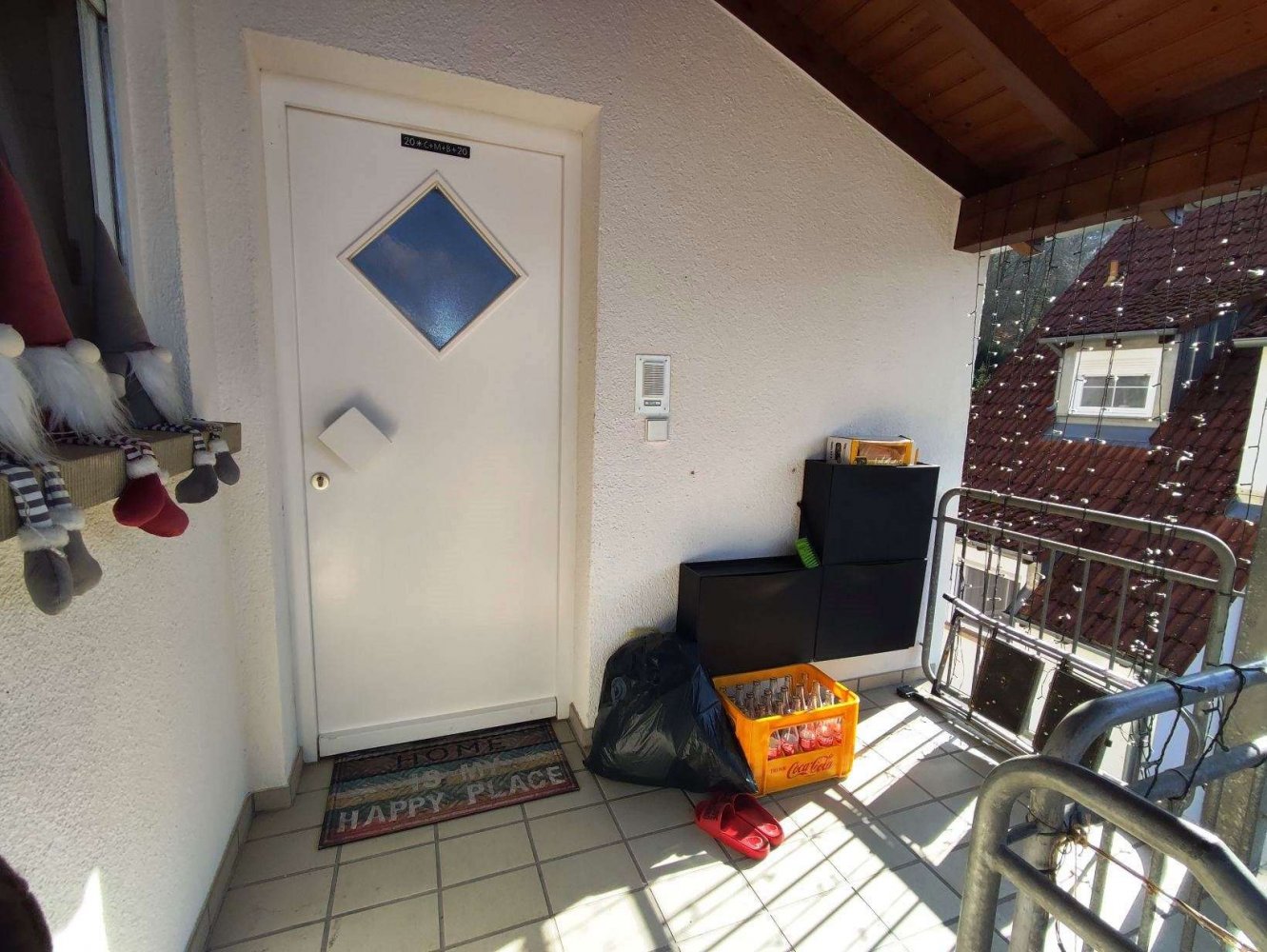 Vom Wohnzimmer aus geht es auf den Balkon der genug Platz zum Verweilen bietet.
