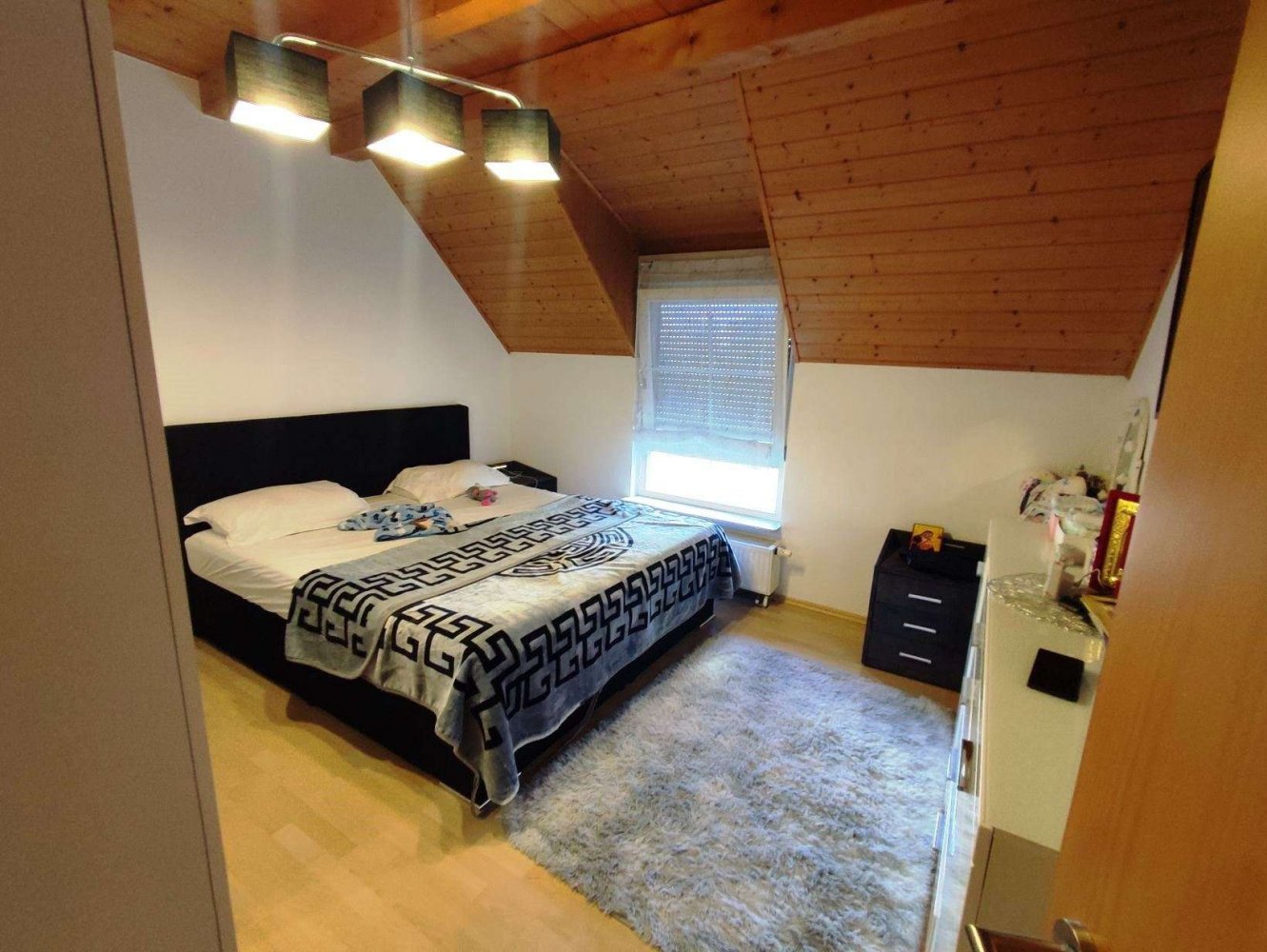 Vom Flur aus geht es im hinteren Bereich auf den teilausgebauten Spitzboden wo sich das Kinderzimmer befindet.