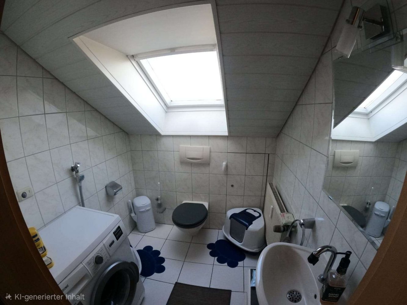 - Toilette: Wand-WC, Waschbecken und Waschmaschinenstellplatz