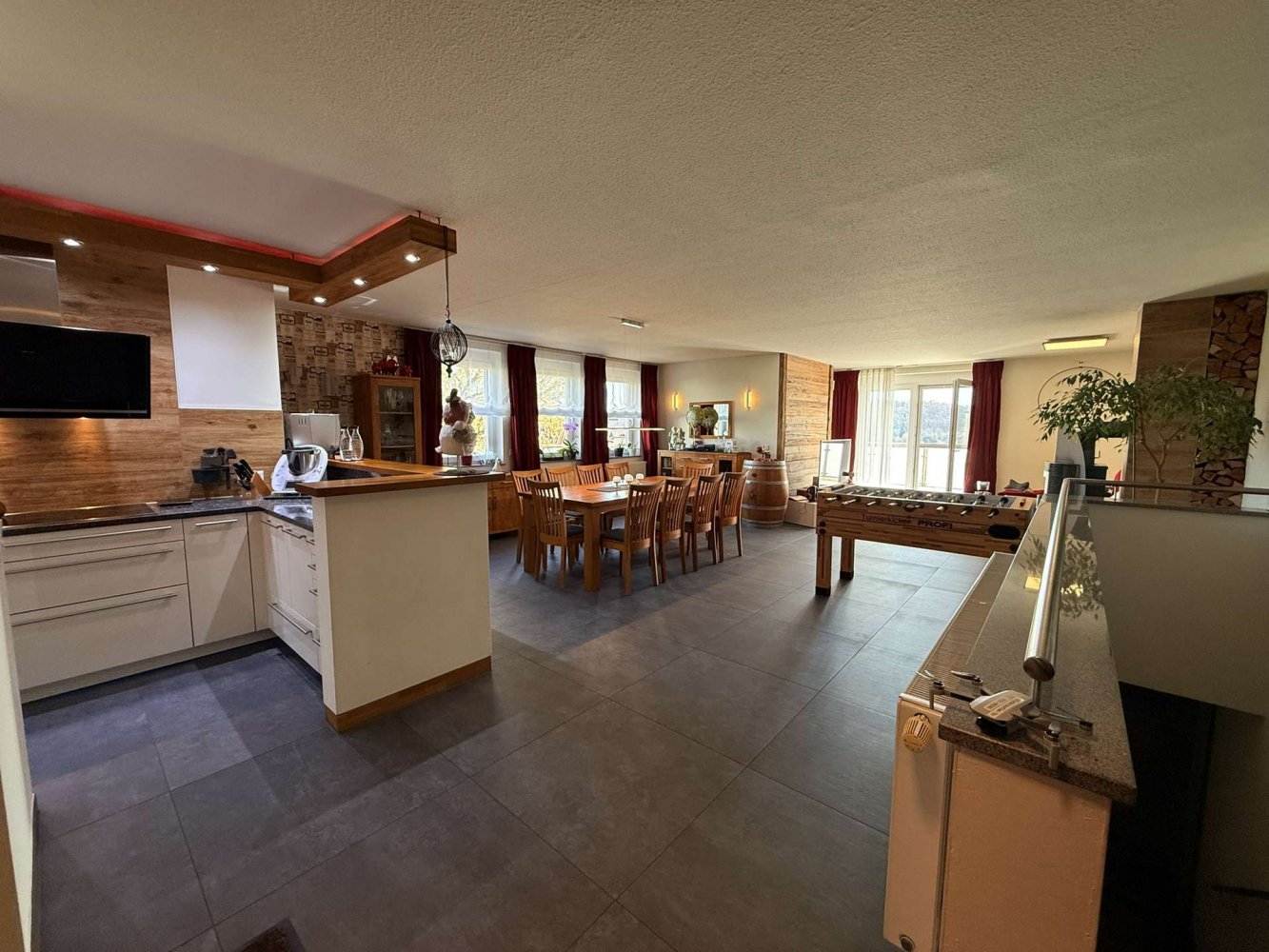 Die Wohnung überzeugt durch ein offenes Wohnkonzept, helle Räume, hochwertige Fliesen, einen Kaminofen sowie eine stilvolle Einbauküche, welche im Preis enthalten ist. Der großzügige Wohn- und Essbereich mit Balkon bildet das Herzstück der Wohnung.
