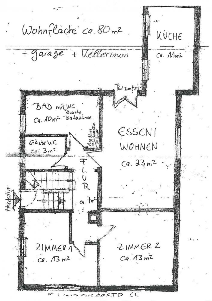 Zur Wohnung gehört ein praktischer Kellerraum für zusätzlichen Stauraum. Eine Garage steht für monatlich 35,00 € separat zur Verfügung. Allerdings kann die Garage erst nach Fertigstellung des Hinterhauses genutzt werden. Es sind noch ein paar Arbeiten am und um das Haus herum geplant, Beispielsweise sollen die Pflastersteine erneuert werden, etc. Vorstellbar wäre auch eine kleine Sitzgruppe im Innenhof zu platzieren. Weitere Parkmöglichkeiten stehen im öffentlichen Straßenraum zur Verfügung.